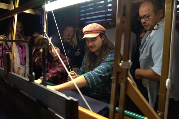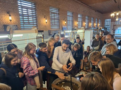 Am nächsten Morgen ging es nach einer weiteren Nacht in Çeşme früh mit zwei Bussen nach Bursa. Dort erwartete die Gruppe zunächst ein gemeinsames Essen in einem Restaurant mit typischer türkischer Küche. Anschließend stand ein Besuch in der ältesten Seidenmanufaktur der Türkei auf dem Programm. Hier erlebten die Jugendlichen den gesamten Weg der Seidenproduktion – von der Seidenraupe bis zum fertigen Teppich. Wer wollte, konnte selbst einen Seidenfaden aus einem Kokon lösen, am Webstuhl Stoff herstellen oder einige Knoten für einen Seidenteppich knüpfen. Die Erkenntnis, dass ein Seidenfaden stärker ist als Stahl, wurde zu einem schönen Bild für unser gemeinsames Projekt: wertvoll, fein, aber sehr belastbar.