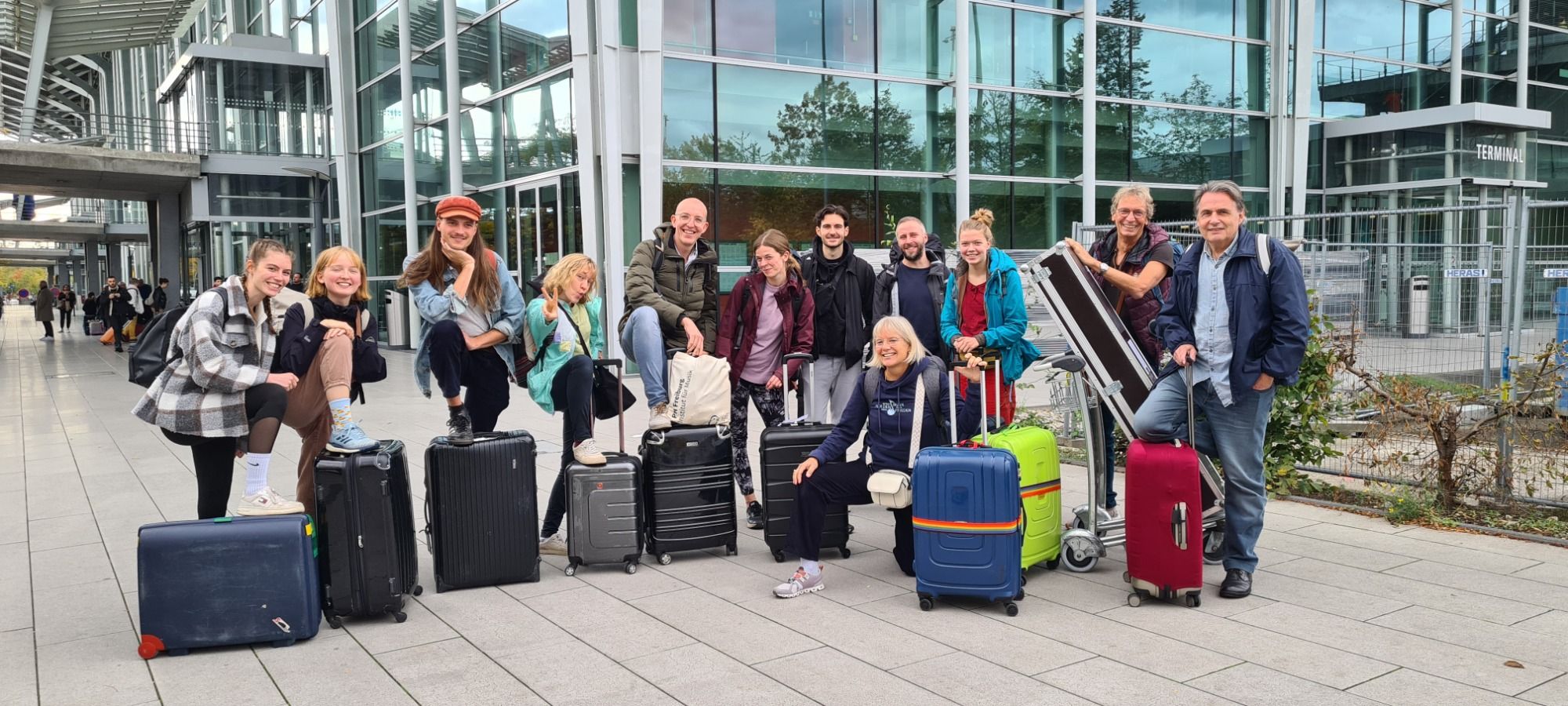 Am Samstag, den 26. Oktober war es so weit! Zum ersten Mal trafen sich die 24 Teilnehmer des Friedenscamps aus Deutschland am Flughafen in Basel. Mit großem Hallo begrüßten sich die jungen Sängerinnen und Sänger aus Freiburg, Müllheim und die weiter angereisten aus Bonn, Limburg und Kaiserslautern. Eine gespannte Vorfreude auf das 10-tägige Abenteuer in Izmir war in allen Gesprächen zu spüren. Die erste Hürde war dann schon die Aufgabe des Schwergepäcks, zwei große Flightcases mit Keyboard und Gitarren und zwei kleinere Lautsprecherboxen, die fast nicht mitgenommen wurden. Das hat aber dann doch durch die Intervention einer erfahrenen Flughafenmitarbeiterin geklappt.