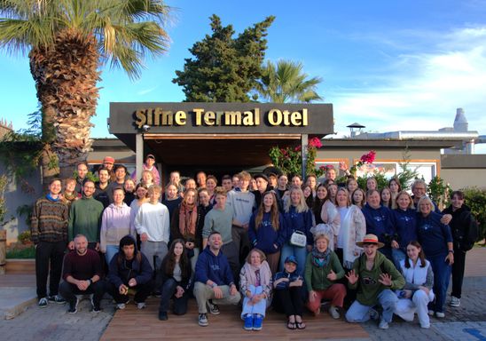 Wer schon einmal in den Orient gereist ist, weiß, dass vieles anders kommt als gedacht. So war es auch bei uns. Die türkischen Rotarier, unsere gastfreundlichen Organisatoren in der Türkei, wollten uns zu dieser schon fortgeschrittenen Jahreszeit keinen Aufenthalt auf einem Campingplatz zumuten. Das Wetter sei zu unsicher und in der Nacht sei es schon empfindlich kalt. Also wurde umdisponiert: Durch gute Kontakte unserer Gastgeber zur Stadt Çeşme konnten wir unser Musik-Friedens-Camp im Şifne Termal Hotel aufschlagen. Das war in jeder Hinsicht ein Glücksfall! Anfängliche Sorgen, dass wir uns das finanziell nicht leisten können, wurden schnell zerstreut. Unser Finanzrahmen (Campingplatz!) wurde durch die großzügige Unterstützung der Gemeinde Çeşme und die Rotary Clubs vor Ort eingehalten.