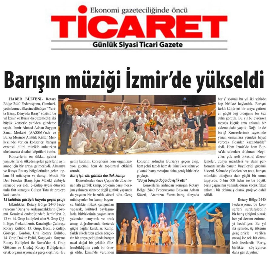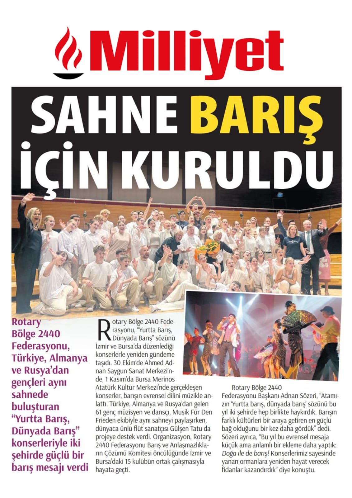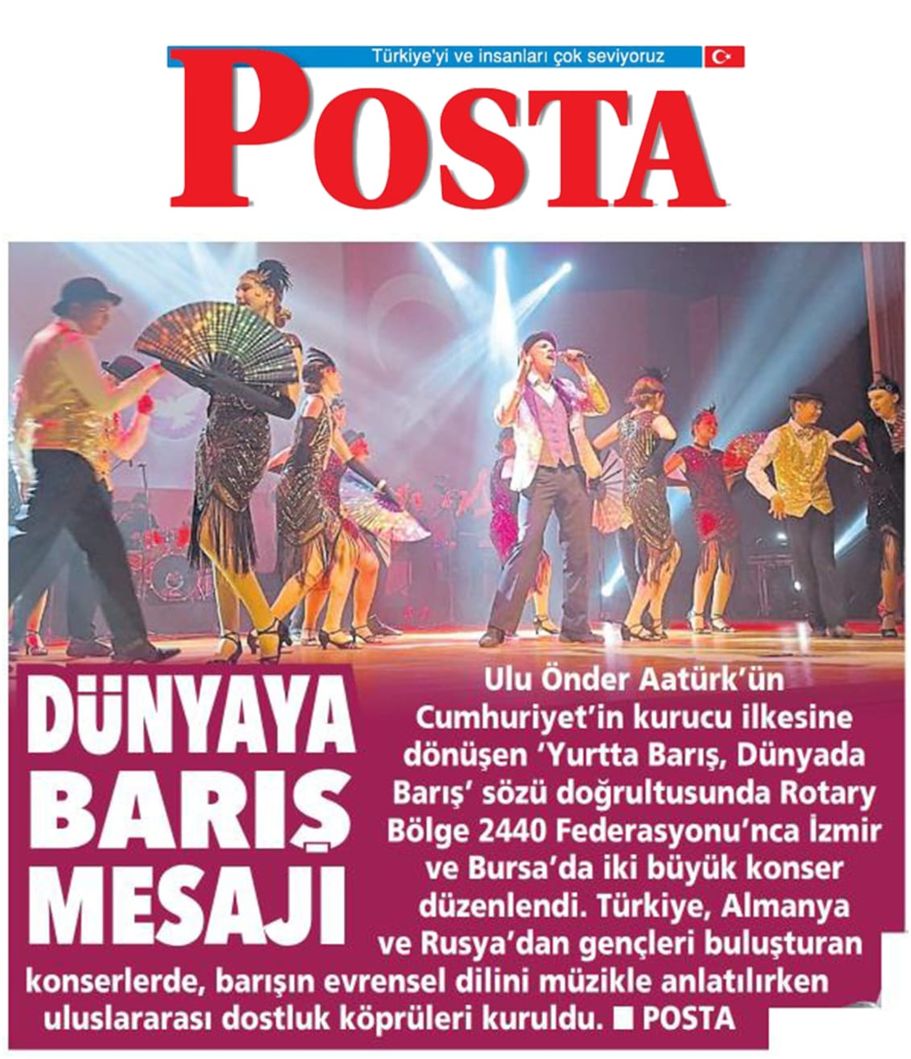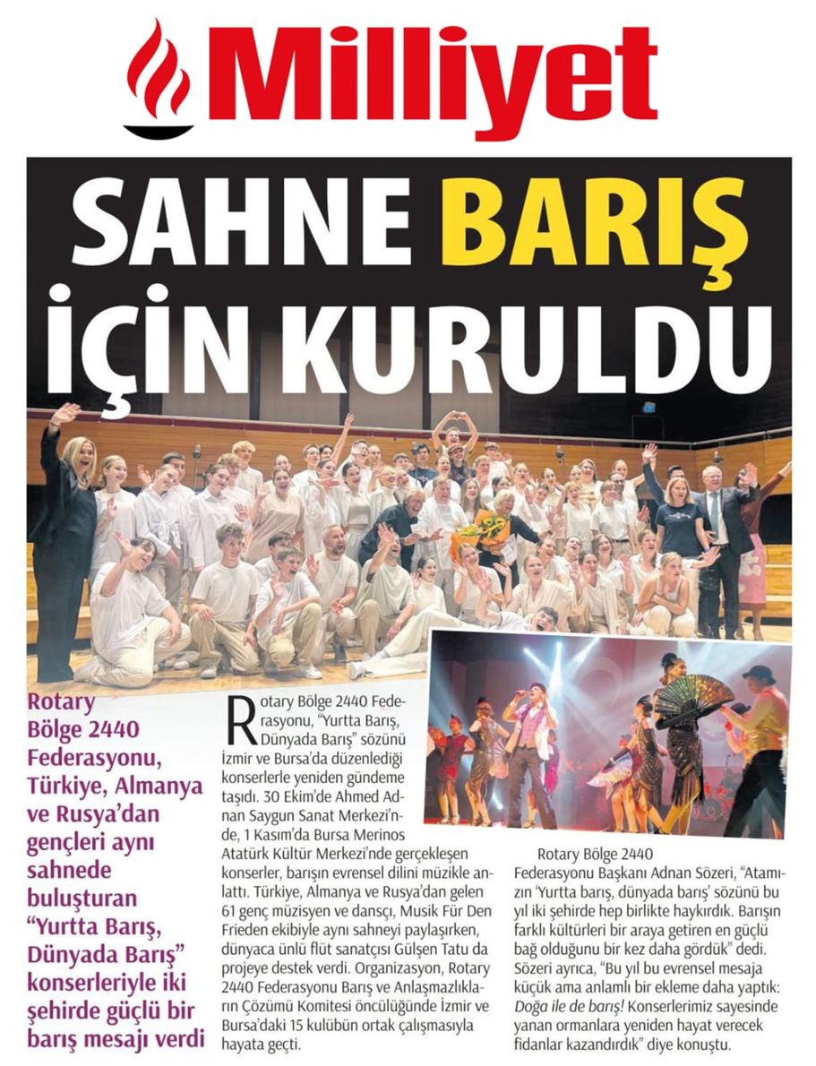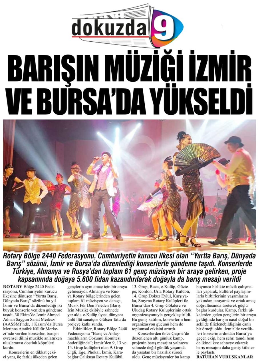 Zum Abschluss des Abends erhielten alle Mitwirkenden von den Rotary Clubs aus Bursa ein persönliches Zertifikat. Die Einnahmen aus beiden Konzerten wurden von Rotary genutzt, um 5600 Bäume in der Region neu zu pflanzen – ein wichtiges Zeichen nach verheerenden Bränden im Frühjahr in Izmir und Bursa. Die türkischen Zeitungen berichteten überregional über die Konzerte.