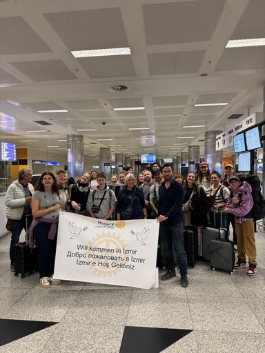 Eine kleine Gruppe dieser Russischschüler entschied sich bewusst gegen das Flugzeug und reiste schon einige Tage vorher mit dem Zug von Freiburg über Wien und Budapest nach Istanbul, von dort mit dem Bus weiter nach Çeşme. Die große deutsche Gruppe flog am Samstag, 25.10., von Basel nach Izmir und wurde dort vom Peace Committee der Rotary Clubs aus Izmir mit einem großen Willkommensplakat herzlich empfangen. Anschließend ging es per Bus in das vertraute Şifne Thermalhotel in Çeşme. Die russische Gruppe und die deutsche Zugreisetruppe waren bereits eingetroffen. Die Wiedersehensfreude war groß, es wurde gelacht, umarmt und erzählt, als treffe man alte Freunde. Die Unterbringung verlief dank guter Vorbereitung reibungslos: Die Zimmerverteilung in Zwei- und Dreibettzimmer war im Vorfeld abgestimmt.