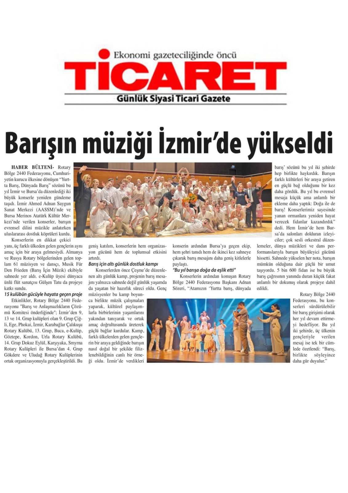 Am Abend fand anlässlich des 100jährigen Jubiläums der Staatsgründung der Türkei ein festliches rotarisches Konzert im Ahmed Adnan Saygun Art Center statt. Das deutsch-russische Ensemble und die internationalen Teilnehmer des Peace Camp waren alle eingeladen. Die bekannte türkische Sängerin Serenad Bağcan sang zusammen mit dem Philharmonischen Orchester bekannte türkische Lieder. Bei vielen Liedern sang das Publikum voll Begeisterung mit. Alle internationalen Gäste konnten durch diesen wunderbaren Eindruck tief in die türkische Kultur eintauchen.