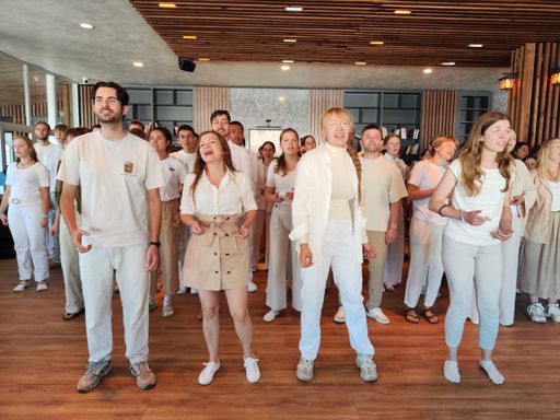 Ab 11 Uhr wurde konzentriert gearbeitet. Zunächst galt es, die gemeinsam zu singenden Songs auf ein einheitliches Niveau zu bringen. Danach bildeten sich kleinere Gruppen zu speziellen Liedern und Formationen. Andere arbeiteten – teils direkt am Meer – an Tanzchoreografien. Besonders erfreulich war, dass die Musikstudierenden in diesem Jahr noch stärker musikalische Verantwortung übernahmen und Proben eigenständig organisierten und leiteten. Die Band mit ihrer großen Bläserbesetzung wuchs in diesen Tagen hör- und spürbar zusammen.